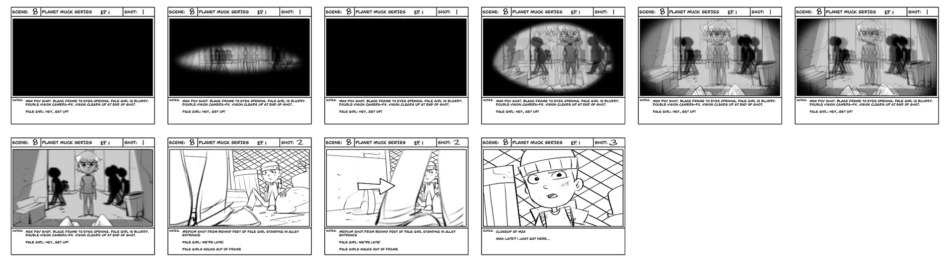 Storyboards and designs for KIZ Studios' "Planet Muck" animated series pitch.